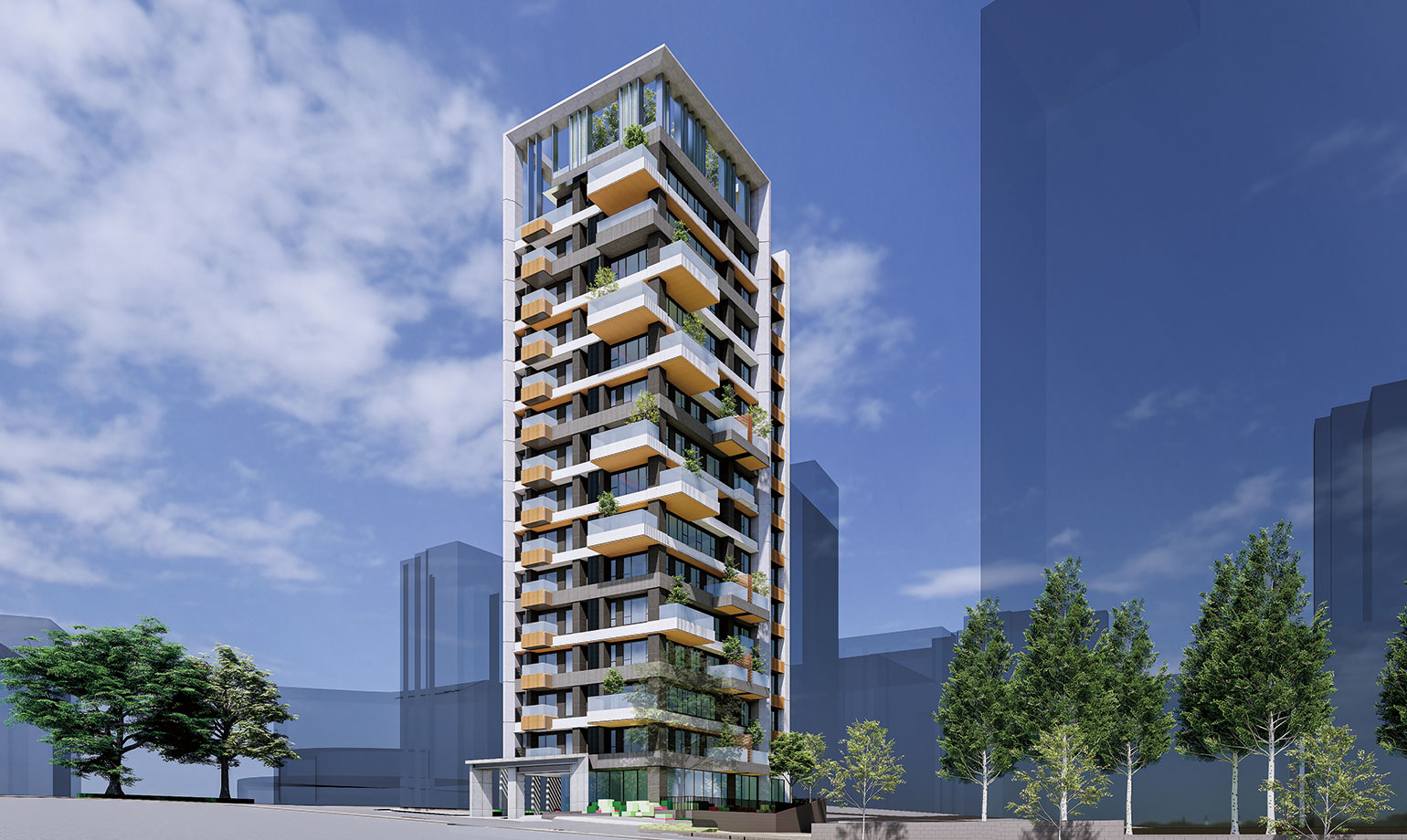 本案坐落於天母山區靜巷,為十五層樓之集合住宅。